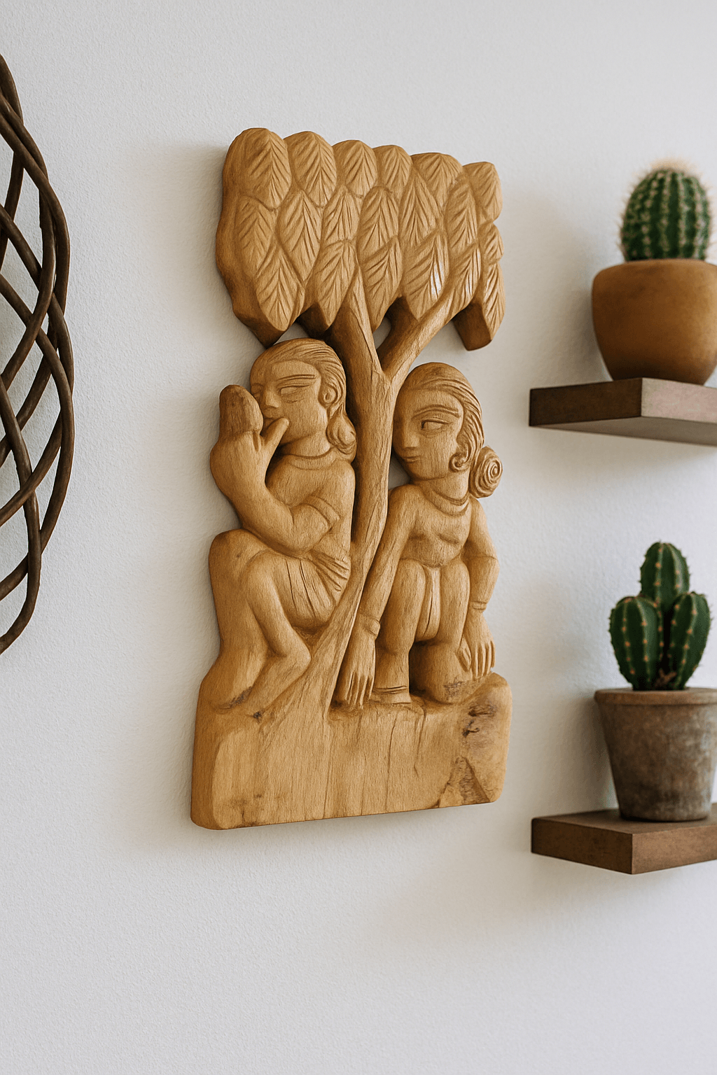 Handcrafted Wooden Bijapuri Tribal Art | Traditional Madhya Pradesh Wall Décor | Village Couple Under Tree Figurine